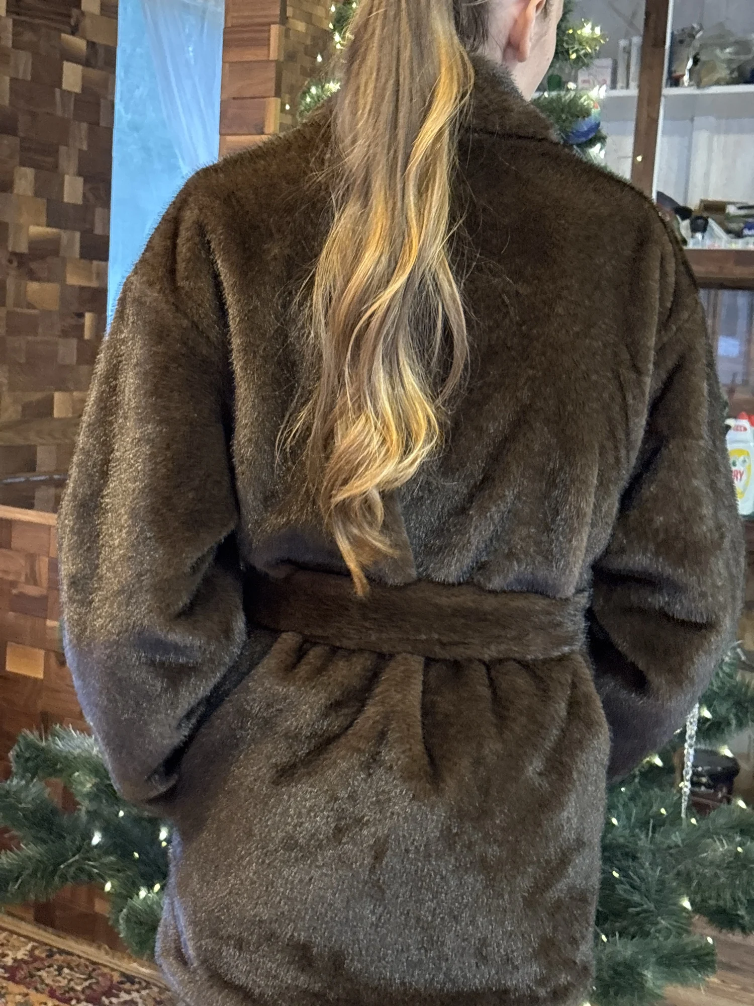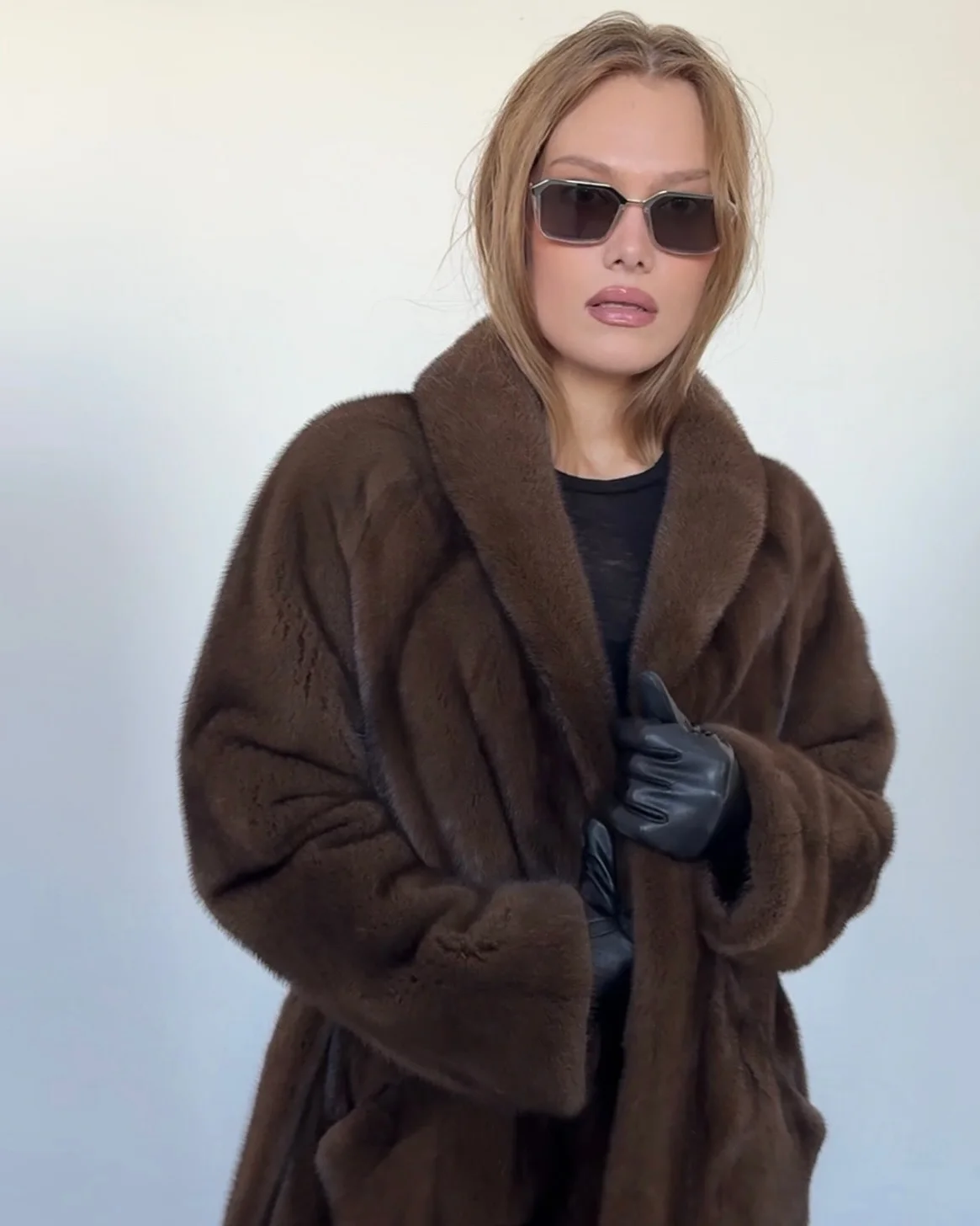 unexpectedly flattering fur coat. looks very beautiful and expensive.