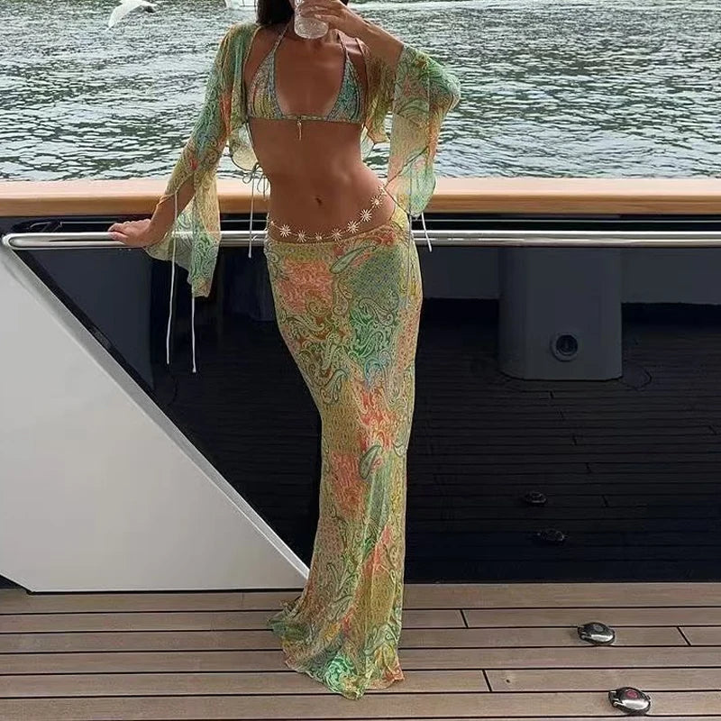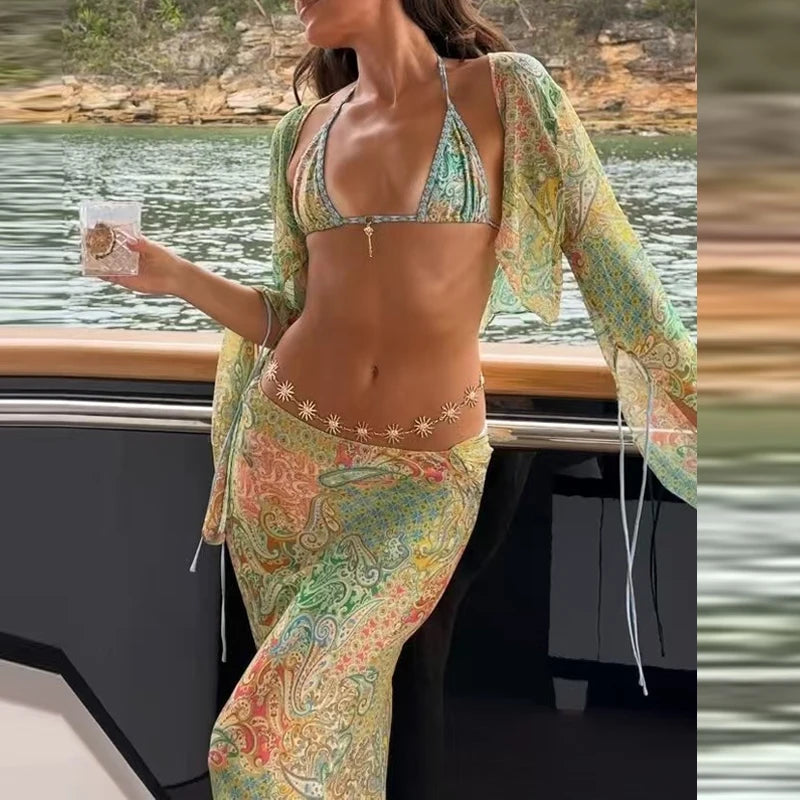 Say hello to your new summer obsession. The Sunspell Triangle Bikini Set turns up the heat with a vibrant paisley-inspired print in juicy pinks, oranges, ocean blues, and lush greens. Designed to flatter and glow under the sun, this bikini is where classic meets elevated detail.